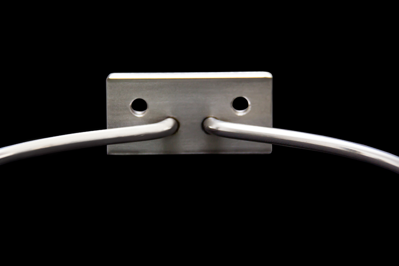 Fabricado en varilla de acero con acabado en pintura epóxica horneada o en acero inoxidable. |